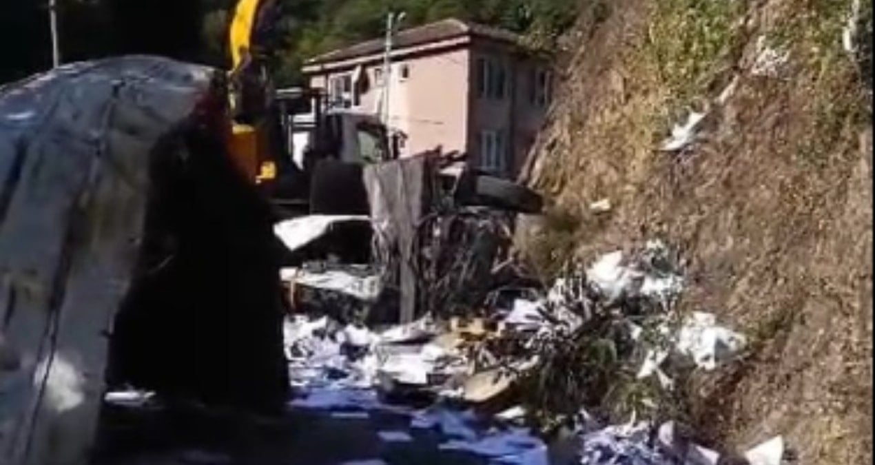 Sarıyer’in Maden Mahallesi Özdereiçi Sokak’ta saat 10.00 sıralarında meydana gelen kazada, 34 YIM 69 plakalı kamyonun sürücüsü direksiyon hakimiyetini kaybetti. Kamyon önce konteynere çarptı, ardından savrularak alt yola düştü.