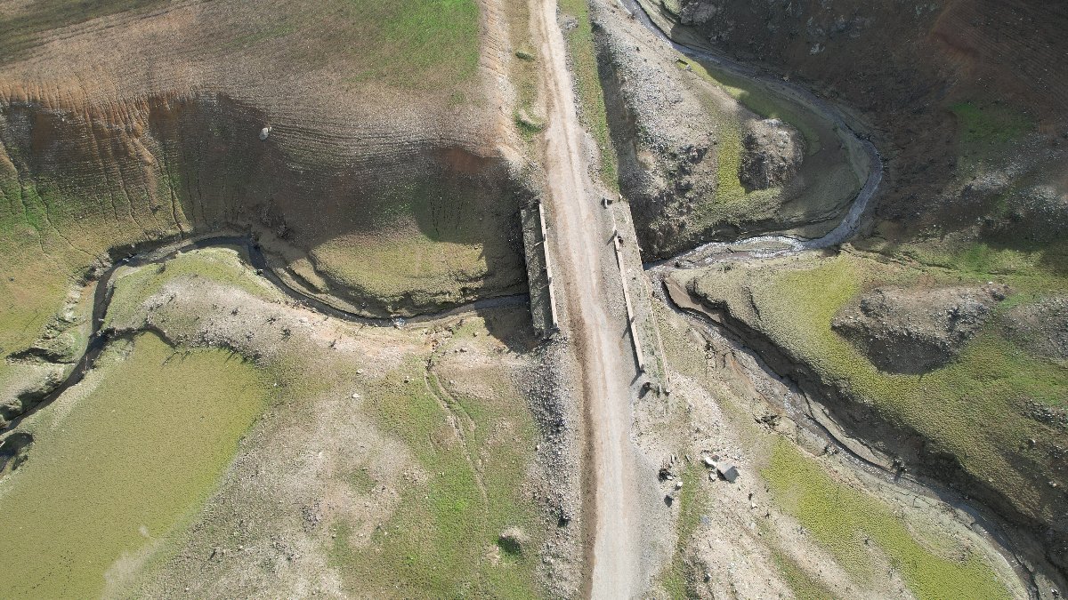 Yolun bir kısmı drone ile net şekilde görülürken yol üzerindeki köprüler de suların çekilmesiyle ortaya çıktı.