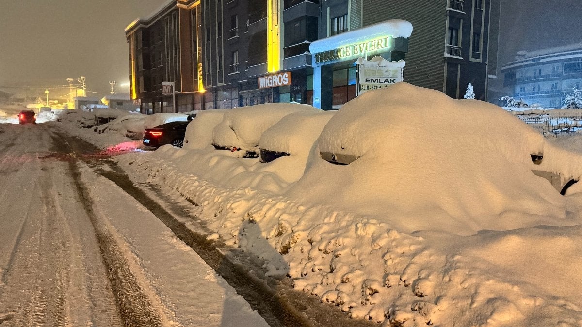- Karabük’ün Safranbolu ilçesinde yoğun kar yağışı nedeniyle araçlar karla kaplandı ve görünmez hale geldi.