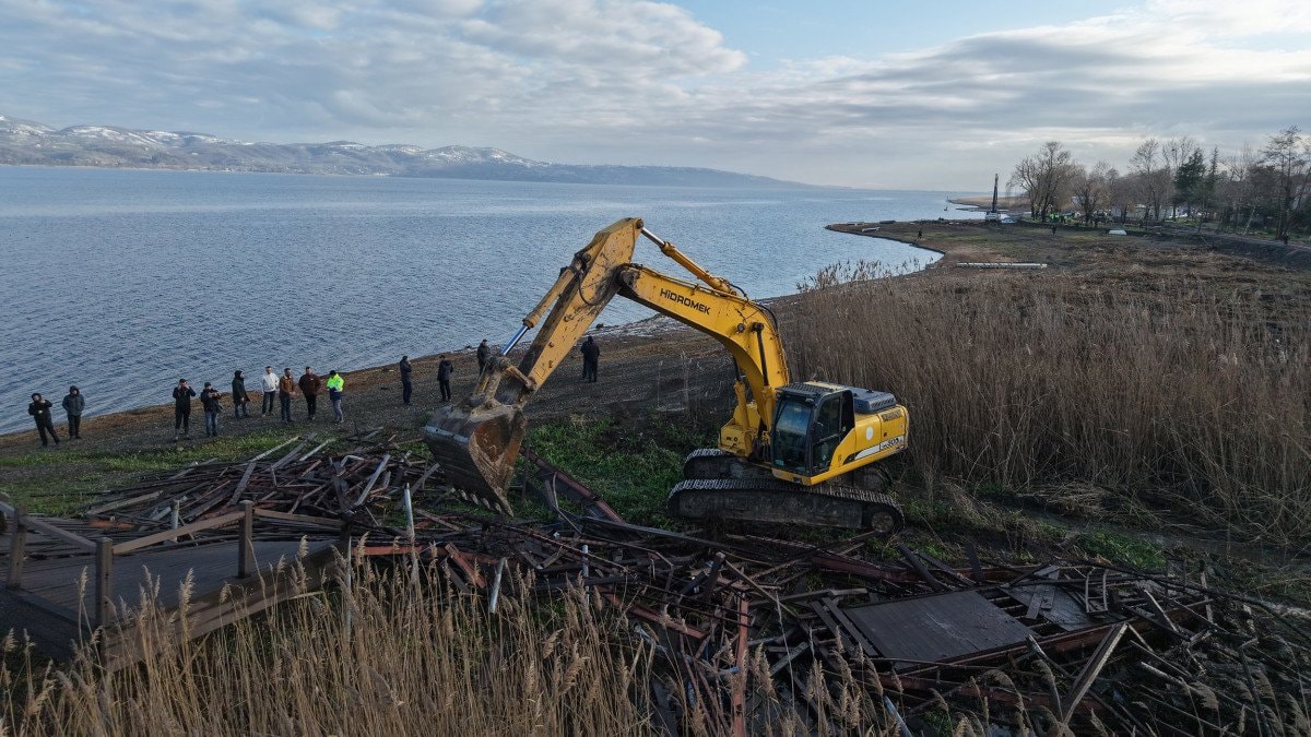 Türkiye’nin en önemli içme suyu ve doğal yaşam alanlarından biri olan Sapanca Gölü’nde, kamuya ait alanlarda bulunan kaçak yapılar kaldırılıyor.