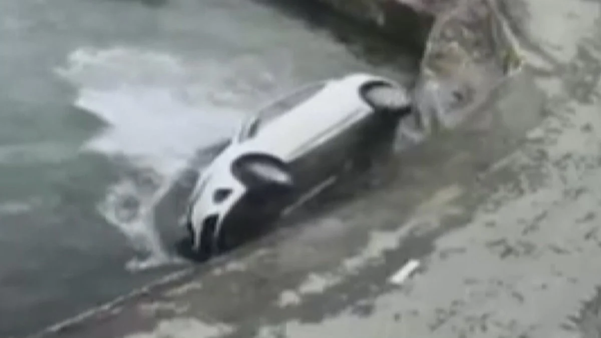 Otomobilin denize düşmesi güvenlik kamerasınca kaydedildi.