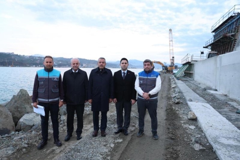 Şantiyeyi ziyaret eden Rize Valisi İhsan Selim Baydaş, ana mendirek başta olmak üzere devam eden dolgu ve üstyapı faaliyetleri hakkında yetkililerden bilgi aldı.