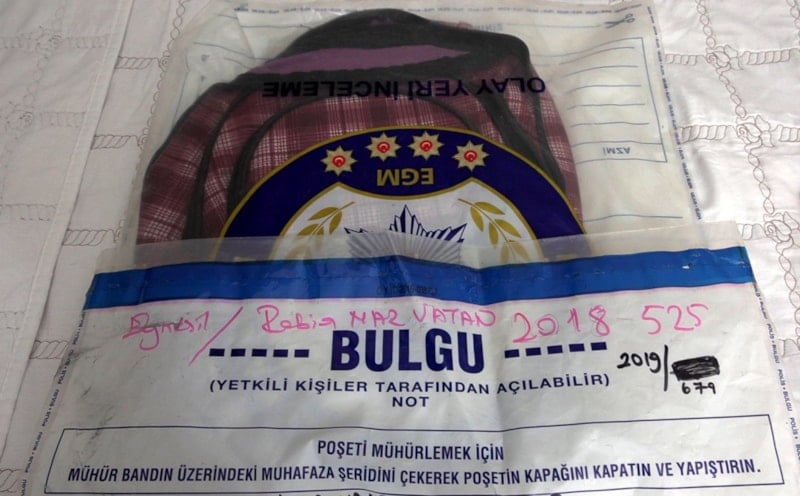 Aldıktan sonra hiçbir yerine dokunmadım. Adli torbada olduğu gibi duruyor. Hiç açmadım ki tekrar incelensin diye. Çantanın altında simsiyah çizgili bir iz var; üzerinden bir şey geçmiş gibi. Araç lastik izi olma olasılığı çok yüksek. Rabia Naz’ın okul çantasında hiçbir ize rastlanmıyor. Çantayı tutuğu yer belli, her gün sırtına aldı, ders saatlerinde çantasını açıp kapattı. Rabia’nın parmak izi, naylon dokulu bir çantada nasıl olmaz? “ifadelerini kullandı.