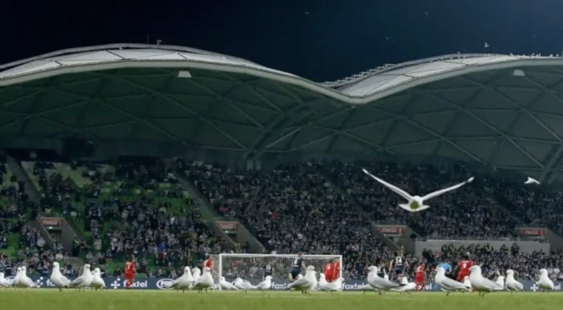 Melbourne Victory – Newcastle Jest maçının sonlarında saha içerisine giren martılar sahayı tamamen ele geçirdi. Mücadele martıların sahaya girmesi nedeniyle yaklaşık 3 dakika dururken, martıların stadyumdan ayrılmasıyla maç kaldığı yerden devam etti.